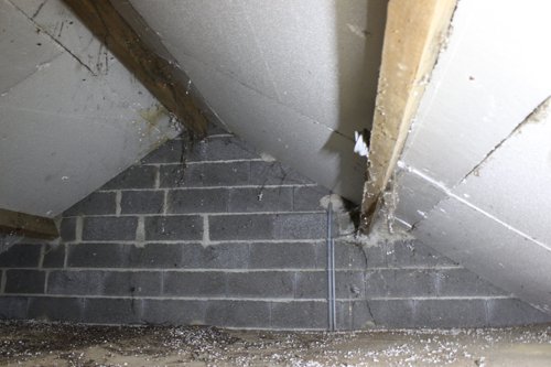 la petite surprise de la maison : un grenier se cachait au-dessus de l'atelier. Nettoyé et réaménagé, il va nous servir de zone de stockage. Mais avant cela, il va nous falloir retirer le polystyrène et lui trouver un remplaçant pour isoler un peu... En attendant, on cherche d'où viennent les gouttes d'eau qui n'apparaissent que parfois.
