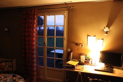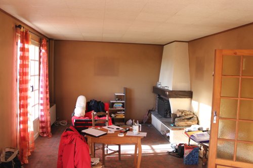 Enlever la toile des murs n’est pas trop difficile mais les agrafes qui la maintenaient, c’est une autre affaire. On va s’en occuper petit à petit, quand on est au téléphone. Le polystyrène du plafond est très bien accroché , avec beaucoup de colle et on ne sait pas encore combien d’ampoules aux mains cela va nous valoir. On se demande si un peu de placo sur certains murs et plafonds ne nous permettrait pas non seulement de nous épargner le travail douloureux mais aussi d’isoler phoniquement de la chambre sud et de l’atelier où il y a pour l’instant la chaudière. Réflexion en cours.